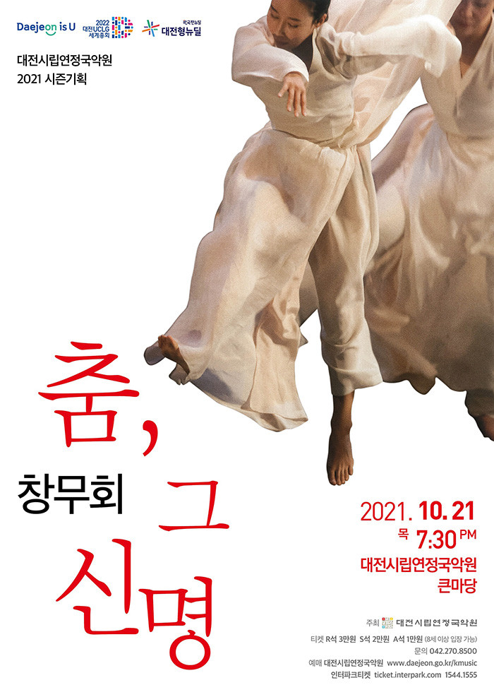 [세계로컬타임즈 민순혜 기자] 대전시립연정국악원(이하 국악원)이 2021 시즌공연 창무회 초청 <춤, 그 신명> 공연을 오는 21일 오후 대전시립연정국악원 큰마당에서 개최한다.