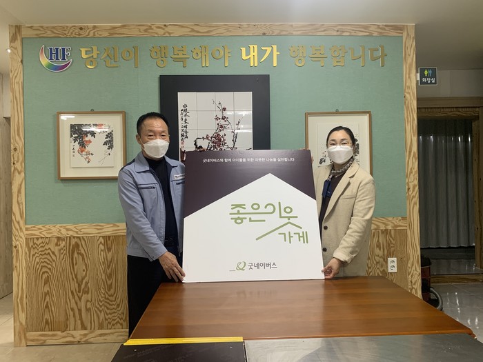 [세계로컬타임즈 이호 기자] 지난 8일 굿네이버스 전북서부지부는 행복한푸드산업과 함께 좋은이웃가게 현판 전달식을 진행했다. 행복한푸드산업은 이번 좋은이웃가게 캠페인에 참여해 수익금의 일부를 국내아동권리보호사업에 후원한다.