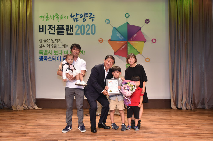 | ▲ 이석우 남양주시장이 ‘9월 독서의 달’을 맞아도서관 이용규정을 모범적으로 준수한 이용자를 다독자상을 수여한 후 기념촬영하고 있다.<사진제공=남양주시청> |