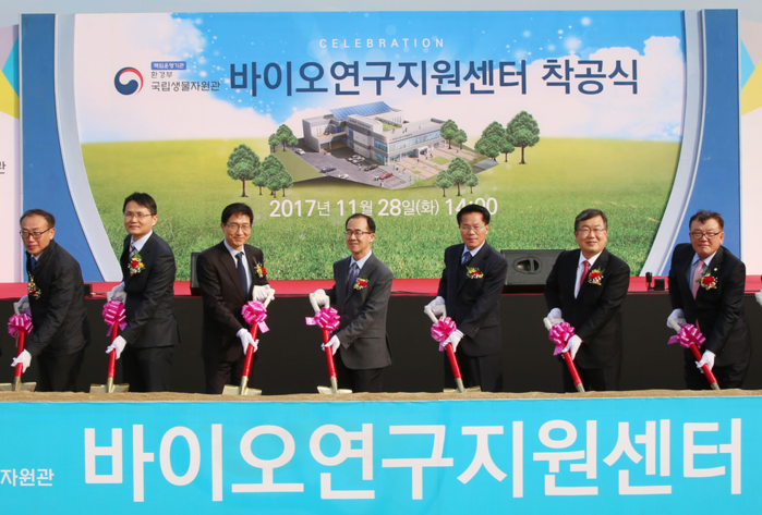 착공한 바이오연구지원센터는 유전자원, 배양체, 천연물, 종자 등 우리나라 야생생물을 대상으로 다양한 생물소재를 확보·관리·보존·연구·분양 기능을 수행하고 있는 4대 은행이다.