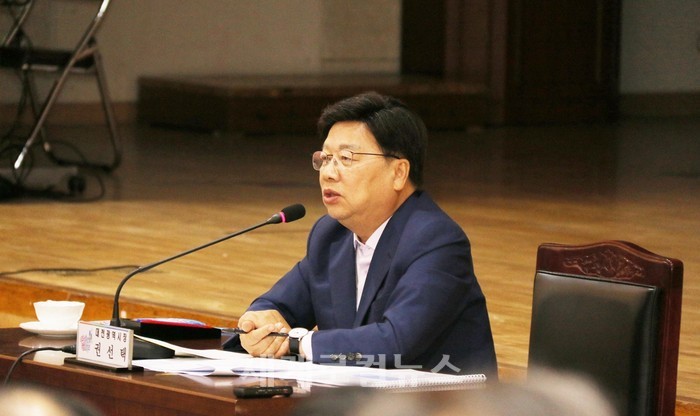 | ▲권선택 대전시장이 31일 대덕구청소년수련관에서 열린 ‘2017 자치구 순방 경청토론회’에서 주민들의 질의에 답하고 있다. 라안일 기자 |