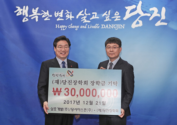 [세계로컬신문 홍윤표 조사위원] 충남 당진시 면천면에 위치한 삼호개발(주)(대표 백승한)이 지난 22일 당진장학회에 장학금 3000만 원을 기탁했다고 26일 밝혔다.