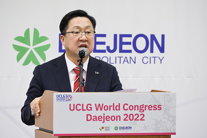 [세계로컬타임즈 민순혜 기자] 이장우 대전시장은 2022 대전 세계지방정부연합(UCLG) 총회 폐막일인 14일 기자 브리핑을 갖고, UCLG 총회 사상 최대규모인 145개국 576개 도시 6,200여 명이 참여한 가운데 성공적으로 진행되며 대전시의 국제적 위상을 높이는 성과를 거뒀다고 밝혔다.