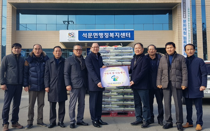 '희망 2018 나눔캠페인 집중모금' 종료기한을 이틀 앞둔 지난 29일 석문면개발위원회(위원장 인나환)는 석문면 행정복지센터를 방문해 어려운 이웃을 위해 써 달라며 405만원 상당의 쌀 10㎏ 150포를 기탁했다.