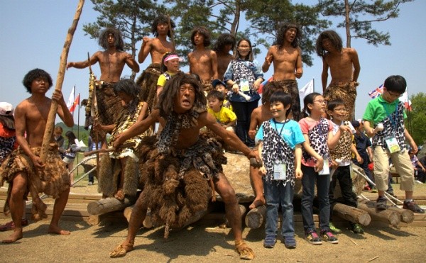 | ▲ 지난해 열린 연천 구석기축제에서 어린이들이 구석기인들과 체험하고 있는 모습.<사진제공=연천군청> |
