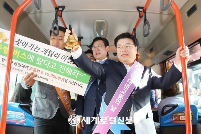 권 시장은 시청 남문광장에서 열린 ‘세계 차 없는 날’기념 교통환경 퍼포먼스에도 참여했다. 이후 대전시와 대전버스운송조합이 공동으로 운행한 ‘골든벨 버스’ 605번에 탑승해 시내버스 이용을 독려했다.
