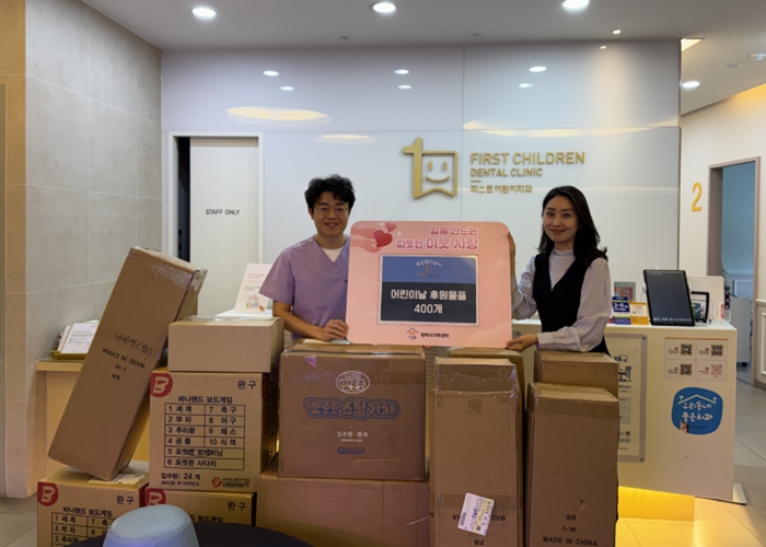 퍼스트어린이치과 박기봉 원장은 "어린이날을 맞이할 아이들에게 작은 기쁨과 응원을 전하고 싶어 이번 후원을 준비하게 됐다. 앞으로도 지역주민의 신뢰에 보답하고 나눔 문화를 확산시키기 위해 지속적인 사회공헌 활동을 이어가겠다."고 전했다.