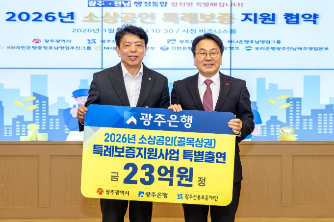 한편 광주은행은 2020년부터 현재까지 광주광역시 소상공인(골목상권)을 위해 총 93억 원을 특별출연하고, 총 2,209억 원 규모의 특례보증대출을 공급해 지역경제 활성화에 힘을 보탰다. 또한 2025년에는 ‘따숨희망 특례보증 업무협약’과 ‘여성기업 금융지원 업무협약’ 등 다양한 협약을 통해 지역 내 소상공인을 위한 보증 공급을 지속적으로 이어가고 있다.