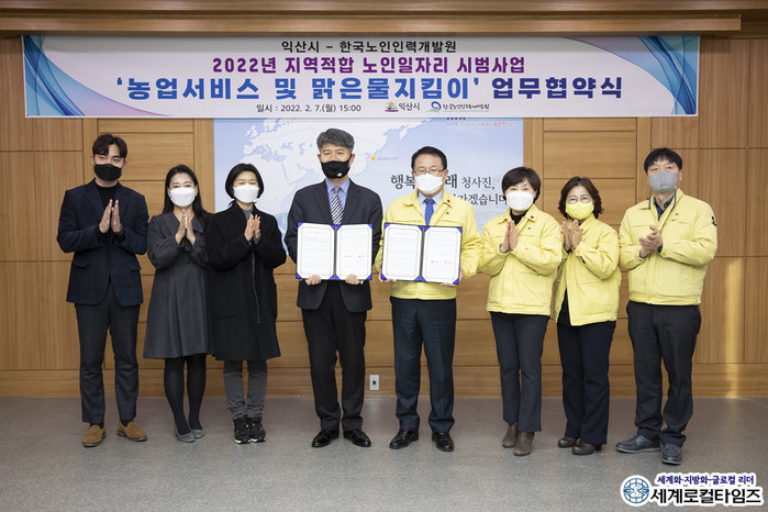 [세계로컬타임즈 조주연 기자] 전북 익산시와 한국노인인력개발원이 7일 노인일자리 시범사업 운영을 위한 업무협약을 체결했다.