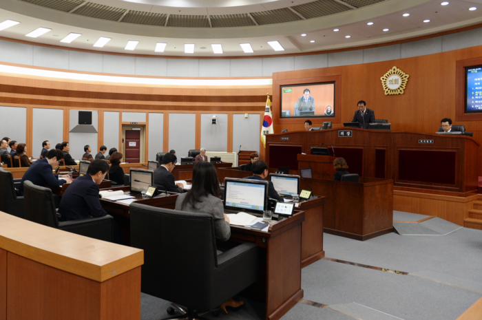 | ▲ 손정환 오산시의회 의장이 16일 제224회 임시회를 개회하고 회의를 진행하고 있다.<사진제공=오산시의회> |