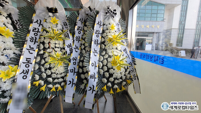 근조 화환 리본에는 “사랑하는 아빠가”, “사랑하는 엄마가”, “사랑하는 동생 OO가” 라며 “천국에서 별이 되기를” 이라고 적혀있었다.