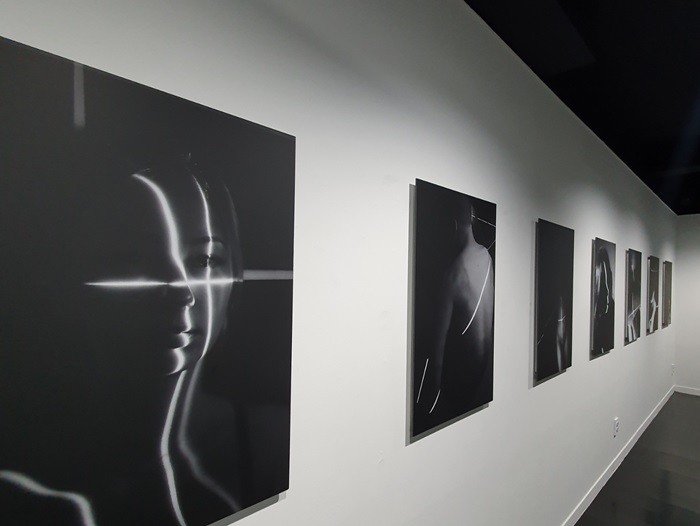변 작가는 이번 작품에서 빛의 직진, 굴절, 반사 성질을 응용해 모델 몸에 선을 그었다. 이는 단순한 선이 아닌 우리가 지켜야 할 사회의 기준선으로 표현됐다. 빛과 그림자, 선 등을 활용해 모델의 몸을 자르고 연결하기를 반복해 규칙과 불규칙의 경계를 작품에 담아냈다.