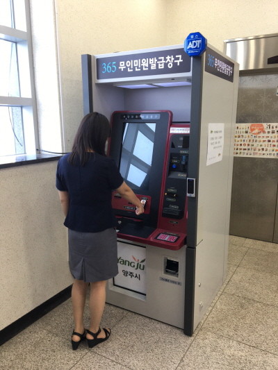 현재 시는 공공기관과 다중이용시설 24개소에 무인민원발급기 27대를 운영하고 있으며 양주시청과 양주역, 덕정역 등 13개소에 설치된 무인민원발급기는 평일 야간이나 공휴일에도 이용할 수 있다.