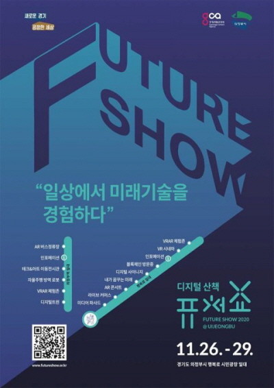 퓨처쇼2020은 경기도가 주최하고 경기콘텐츠진흥원이 주관하는 행사다. 11월 26일부터 29일까지 총 4일간 의정부 행복로 일대에서 개최될 예정이다. 다양한 미래 기술과 가상, 증강현실(VR, AR)을 찾아가는 체험관 운영을 통해 도보 이동형 방식으로 산책하며 관람할 수 있도록 했다. 신종 코로나바이러스 감염증(코로나19) 확산 방지를 위해 대부분의 행사와 전시는 온라인으로도 참여할 수 있도록 했다.