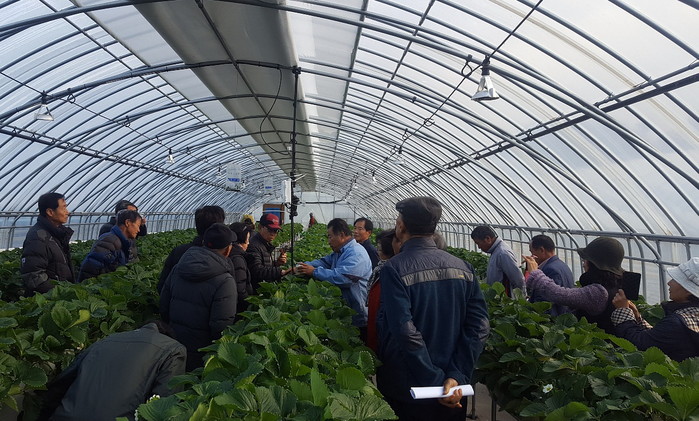 이날 평가회에서 시설원예 무선 관수 제어시스템이 설치돼 실내외 온‧습도를 측정, 자동으로 수분을 공급하고 히트 환기팬으로 하우스 내 공기를 순환시켜 농산물 품질 향상은 물론 노동력 절감을 이끌어 내고 있는 우수사업장 견학도 진행해 농업인들에게 새기술을 공유하는 시간도 가졌다.