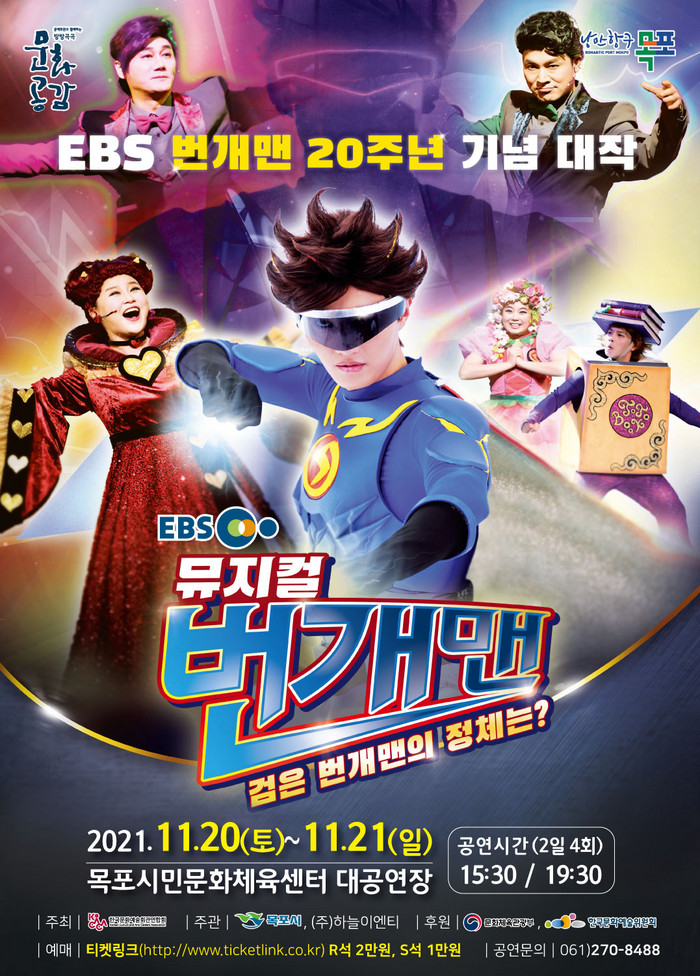 EBS를 대표하는 영유아 캐릭터 ‘번개맨’ 탄생 20주년을 맞아 더욱 화려해진 무대와 완성도 있는 음악, 입체 영상과 특수 효과가 가미된 대형 뮤지컬이다.