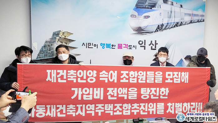 [세계로컬타임즈 글·사진 조주연 기자] 전북 익산시민 수백명이 지역주택조합으로 사기를 당했다며 피해보상과 책임자 처벌을 촉구했다.