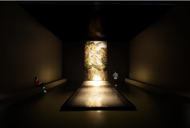 | ▲이이남, 역전된 산수, 600x340cm, 비디오, 수조, 2021. 의재 허백련 '산수팔곡병풍' 모티브로 한 작품. 인간의 고정관념에 대한 단상이다. (사진=전남도립미술관 제공) |