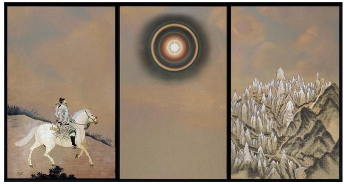 | ▲로랑 그라소, '과거를 연구하다', 2021, 206x130cm 전남도립미술관 특별 커미션. 프랑스 작가 로랑 그라소는 전남도립미술관의 개관특별전을 위해 윤두서의 작품 '말 탄 사람'과 겸재 정선의 '금강내산총도'를 재해석한 신작을 선보였다. (사진=전남도립미술관 제공) |