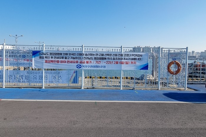 진단검사 이행 확인도 시행돼 19일부터 오는 2월 6일까지 목포수협은 연근해어업 허가어선 등에 면세유류 공급 전 진단검사 음성을 확인한 후 공급해야 한다.