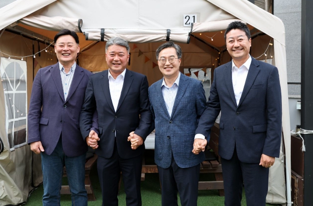 [세계로컬타임즈] 김동연 도지사는 7일 오후 김진경 의장, 최종현 더불어민주당 대표의원, 김정호 국민의힘 대표의원과 수원시 인계동 소재 한 식당에서 만찬을 함께 했다. 2시간 동안 진행한 자리에서 참석자들은 민생 예산 처리 필요성에 공감하며 '여야정협치위원회' 복원 등 경기도 발전을 위한 원활한 소통에 뜻을 모았다.