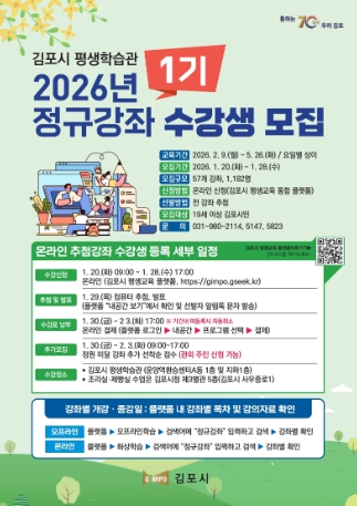 김경수 교육청소년과장은 “평생학습관 정규강좌는 시민 누구나 부담 없이 배움에 참여할 수 있도록 마련된 프로그램”이라며 “많은 시민이 참여해 배움의 즐거움과 의미를 함께 나누길 바란다”고 말했다.