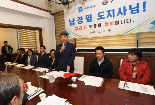 [세계로컬신문 고성철 기자] 백경현 경기도 구리시장은 12일 시를 방문한 남경필 경기도지사와 간담회를 갖고 지역의 최대 숙원사업인 경기북부 제2차 테크노밸리 유치를 비롯한 긴급 현안 사항에 대한 설명과 경기도 차원의 적극적인 관심과 지원을 건의했다.