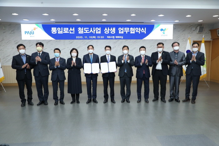 이어 “버스 외의 대중교통수단은 전무한 상황에서 이번 상생 협약을 통해 내년 국토교통부가 고시할 제4차 국가철도망 구축계획에 통일로선이 반영되고 철도의 불모지였던 경기 북부의 교통지도가 크게 변화할 수 있도록 함께 의견을 조율해 갈 것”이라고 말했다.