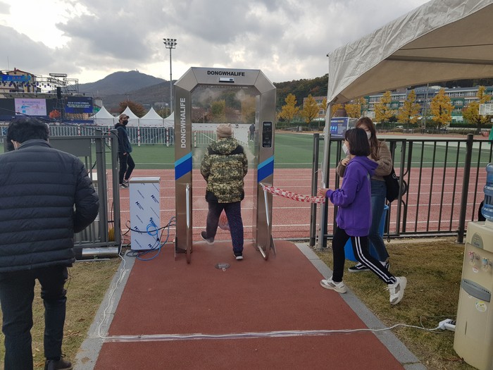 | ▲ 콘서트 입장시 강화공설운동장에선 방역을 철저히 하고 있다. (사진=강화군 제공) |