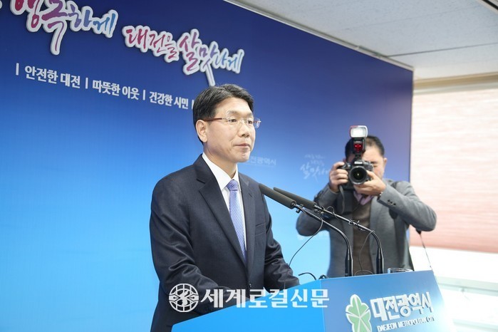 이재관 행정부시장은 14일 오후 시청 브리핑룸에서 긴급브리핑을 갖고 권선택 대전시장의 정치자금법 위반에 따른 시장직 상실에 확정에 따른 권한대행으로 대전시 주요 시정에 대해 입장을 밝히는 시간을 가졌다.