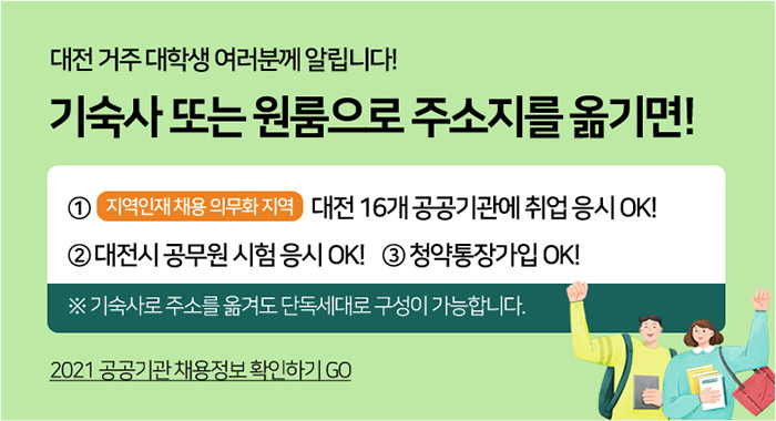 대전시와 대학은 대학 기숙사와 인근 원룸으로 전입한 대학생들에게 기숙사 전입 시 단독세대 구성 가능, 대전에 3년 이상 주민등록상 거주시 대전시 공무원 시험 응시 가능, 청양통장도 가입 가능함을 홍보했으며, 2018년 대전이 혁신도시로 지정됨에 따라, 대전에 소재한 16개 공공기관에 취업도 가능함을 홍보하는데 적극 노력했다.