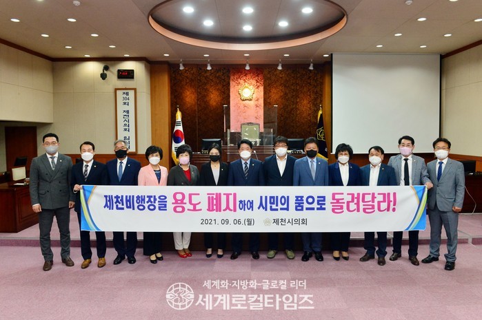 [세계로컬타임즈 김병호 기자]제천시의회(의장 배동만)는 6일 열린 제304회 임시회 1차 본회의에서 제천비행장 용도 폐지와 반환에 대한 건의문을 채택했다.