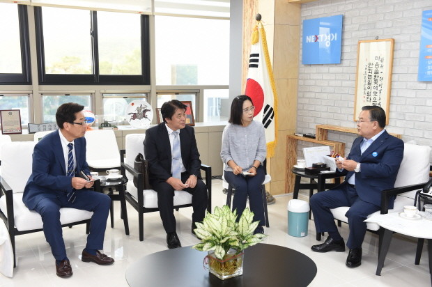 | ▲ 이성호 양주시장(오른쪽)이 자매도시인 일본 후지에다시 교육위원회(위원장 야부자키 마사토) 일행과 환담하고 있다.<사진제공=양주시청> |