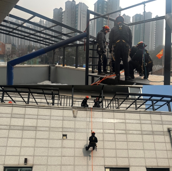 이번 훈련은 추락·고립 등 실제 재난 현장에서 활용도가 높은 로프구조 기술을 중심으로 한 실습 위주의 특별훈련으로, 훈련에 참여한 대원들은 다양한 구조 상황을 가정한 모의훈련을 통해 로프 설치와 확보·하강, 구조 대상자 인양 등 실제 구조 절차를 반복 숙달하며 팀 단위 현장 대응 능력을 강화했다.