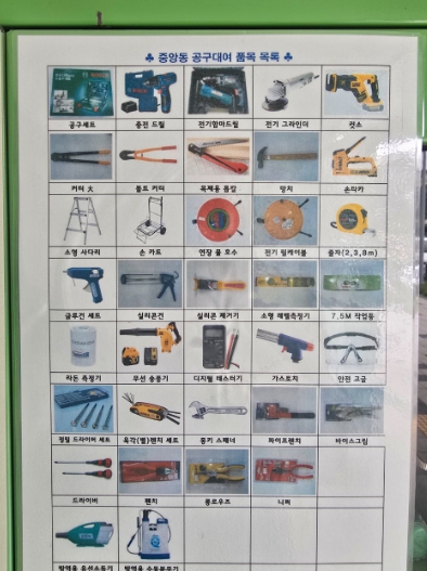 ‘생활공구 공유창고’는 구입하기에는 부담스럽지만 생활 속에서 가끔씩 필요한 각종 공구와 가정용품을 무료로 대여해주는 서비스로, 중앙동에 거주하는 성인이라면 누구나 이용 가능하다. 대여 품목은 전동드릴, 카트, 릴선, 가정용 공구세트 등 총 25여 종으로 마련되어 있어, 간단한 집수리나 정리, 생활편의 작업 등에 활용할 수 있다.