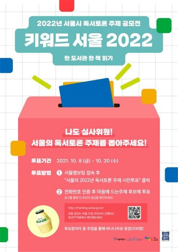 최종 결과는 22일 서울도서관 ‘서울지식이음축제·포럼’의 개막행사인 ‘키워드 서울 2022’에서 발표할 예정이다.