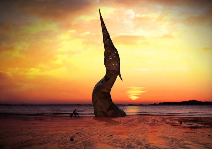 꿈을 향해 비상하는 왜가리의 모습을 표현한 상징물의 외형은 수직상승형의 트러스 구조로, 스테인리스 스틸판에 주변 풍경의 색이 담겨져 시간에 따라 다양한 분위기를 연출하도록 디자인 됐다.
