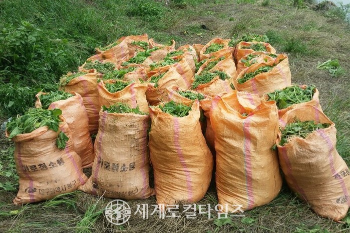 [세계로컬타임즈 글·사진 최영주 기자] 대구 북구청은 금호강 일대에서 수변 생태계를 교란하는 야생식물인 가시박 제거작업을 진행하고 있다.