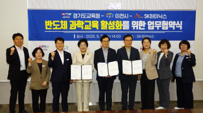 [세계로컬타임즈] 이천시와 경기도교육청, SK하이닉스는 지난 5월 21일 이천에 있는 SK하이닉스 본사에서 지역의 반도체 과학교육 활성화를 위한 업무협약을 체결했다.