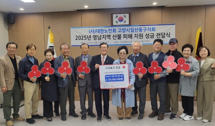 이번 성금은 영남 지역 일대에서 역대 최악의 산불이 발생해 많은 이재민이 고통 속에서 생활하고 있다는 안타까운 소식을 접한 뒤, 고양시 일산동구 관내 151개 경로당과 노인대학 학생들이‘사랑의 성금’모금 운동을 전개해 마련했다.