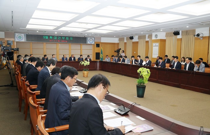 권선택 시장은 5일 시청 대회의실에서 9월 확대간부회의를 열고 ‘2017 APCS’ 준비상황과 경제효과 확대방안과 시정과 구정이 큰 틀에서 하나가 되는 협치 강화를 점검했다.