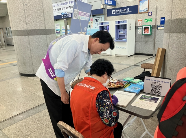 [세계로컬타임즈] 충북도 투자유치국 직원들은 청주공항 민간전용 활주로 건설 사업의 원활한 추진과 지역민의 이해를 돕기 위해 5월 21일, 충남 아산 온양온천역에서 서명운동 홍보활동을 진행했다.