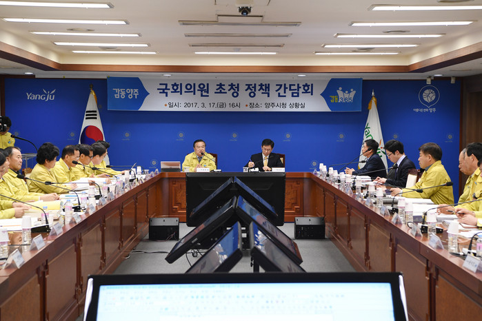[세계로컬신문 고성철 기자] 경기도 양주시는 17일 시청 상황실에서 국·도비 확보와 제도개선 건의를 위해 국회의원 초청 정책 간담회를 열었다.