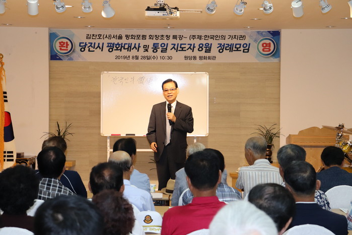 [세계로컬타임즈 홍윤표 조사위원] 당진시 평화대사협의회는 서울평화포럼 김찬호 회장을 초청해 '한국인의 가치관'에 대해 특강했다.