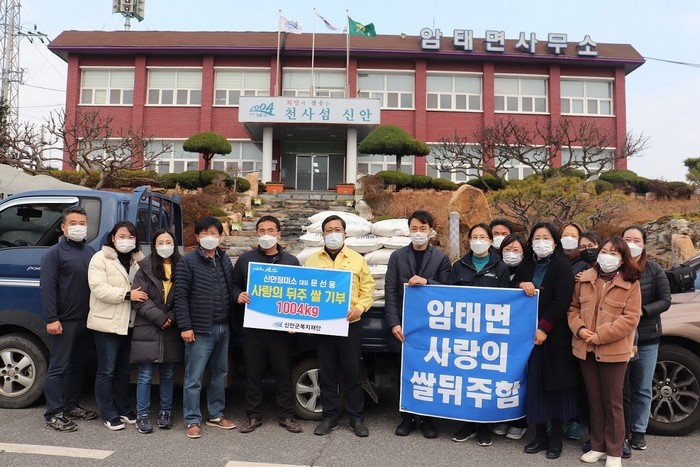 기증된 사랑의 쌀 1004kg은 암태면 저소득층 가정과 독거노인 50세대에게 전달할 계획이다.