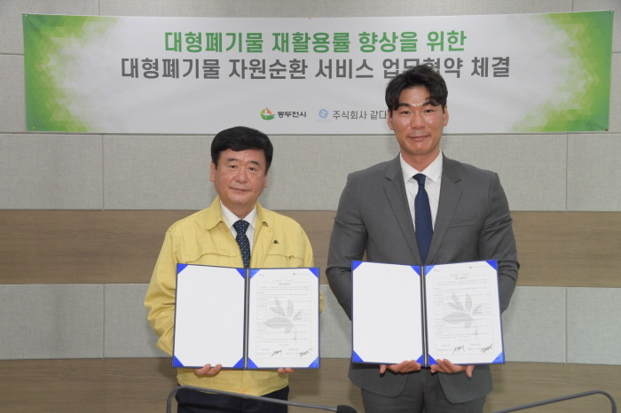 [세계로컬타임즈 신선호 기자] 동두천시는 30일 대형폐기물을 스마트폰으로 간편하게 배출하는 대형폐기물 배출 모바일 서비스 도입을 위해 모바일 서비스 업체 '같다'와 업무협약을 체결했다.