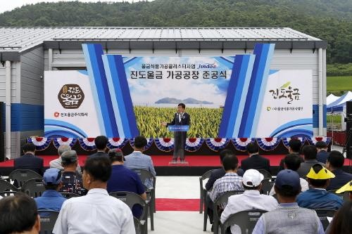 ▲ 전남 진도군이 28일 울금식품가공클러스터사업 HACCP 울금가공공장 준공식을 진행하고 있다. <사진제공=진도군청> |