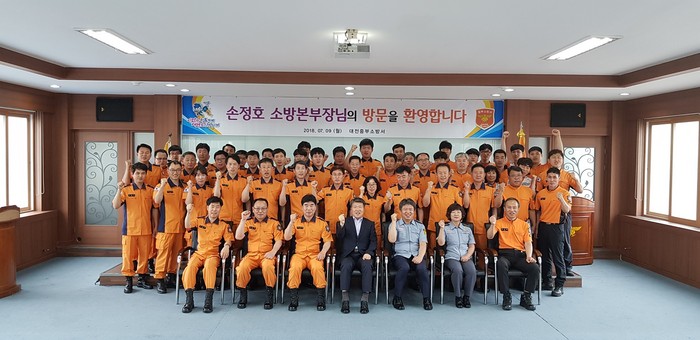 이날 손정호 소방본부장은 중부소방서 3층 강당에서 소방공무원 및 의용소방대원 등 50여명이 참석한 가운데 일선 소방공무원들의 애로사항을 듣고 노고를 격려했다.