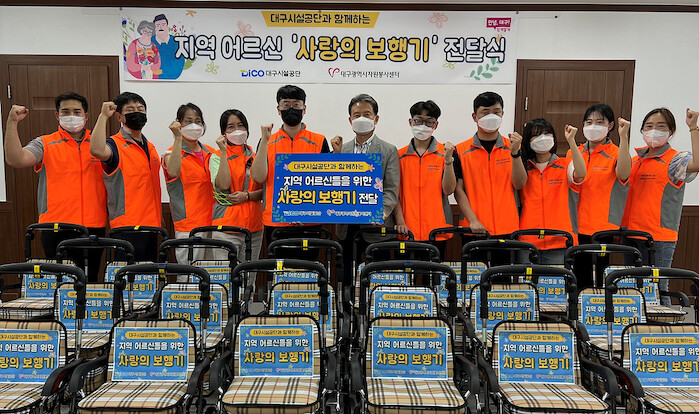 [세계로컬타임즈 이장학 기자] 대구시설공단 사랑나눔봉사단이 27일 지역사회 내 거동이 불편한 저소득 어르신 20가구 대상 ‘사랑의 보행기’ 지원 사업을 펼쳤다.