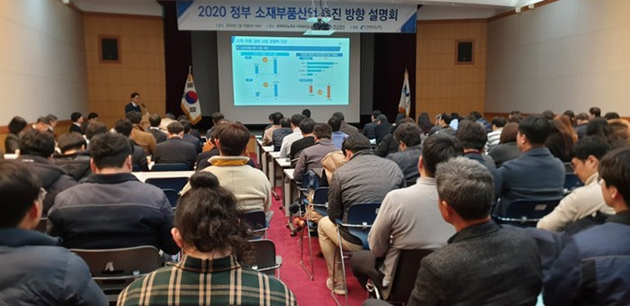 | ▲2020 정부소재부품산업추진방향 설명회에서 참가자들이 설명을 듣고 있다.(사진=경북도 제공) |